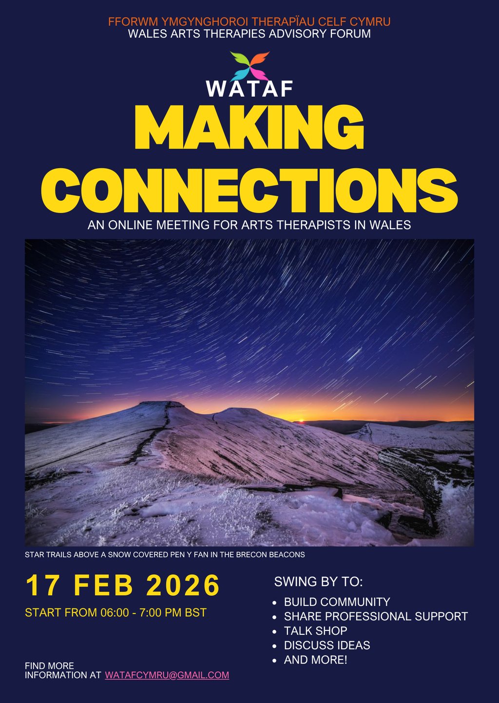 17 February, 2026 6-7 pm online (link will be emailed to WATAF members) If you're not on the mailing list, email watafcymru@gmail.com to express interest. Hope to see you there!
